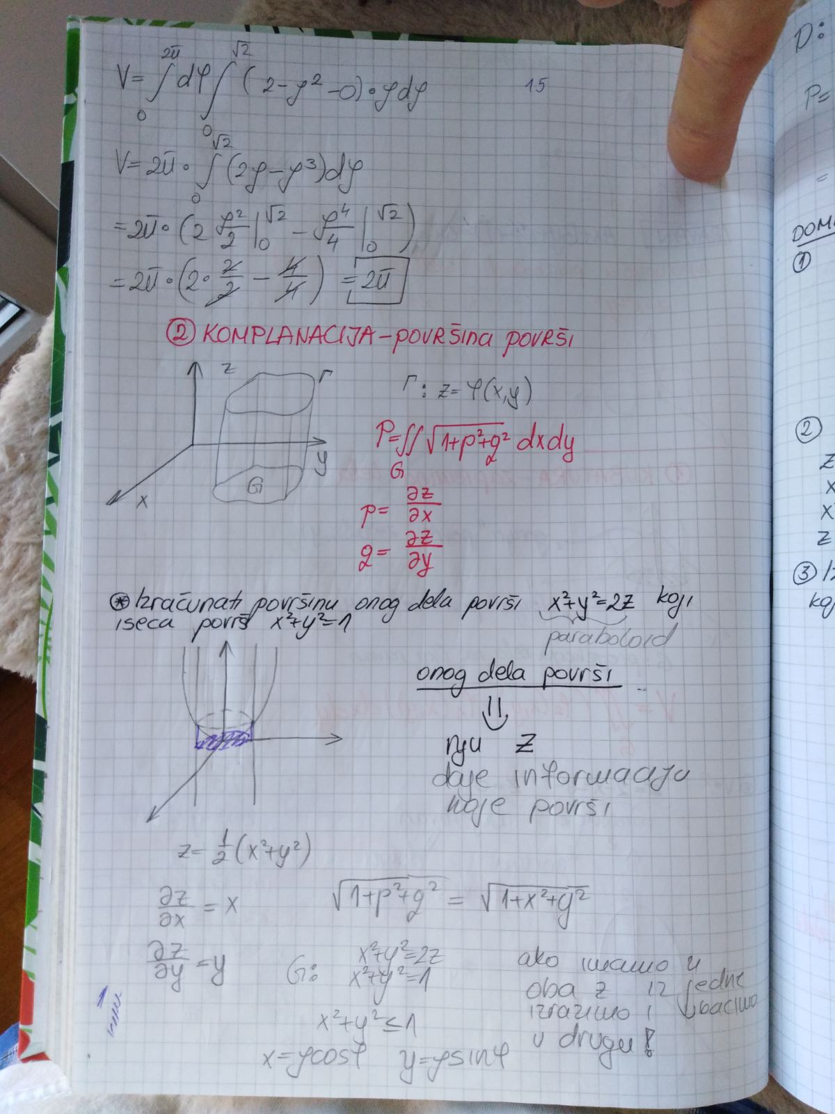 Dvostruki integrali - 2.deo(primena na racunanje povrsine povrsi i zapremine, Grinova teorema) - smene 4 i 6 (A. Pejce)