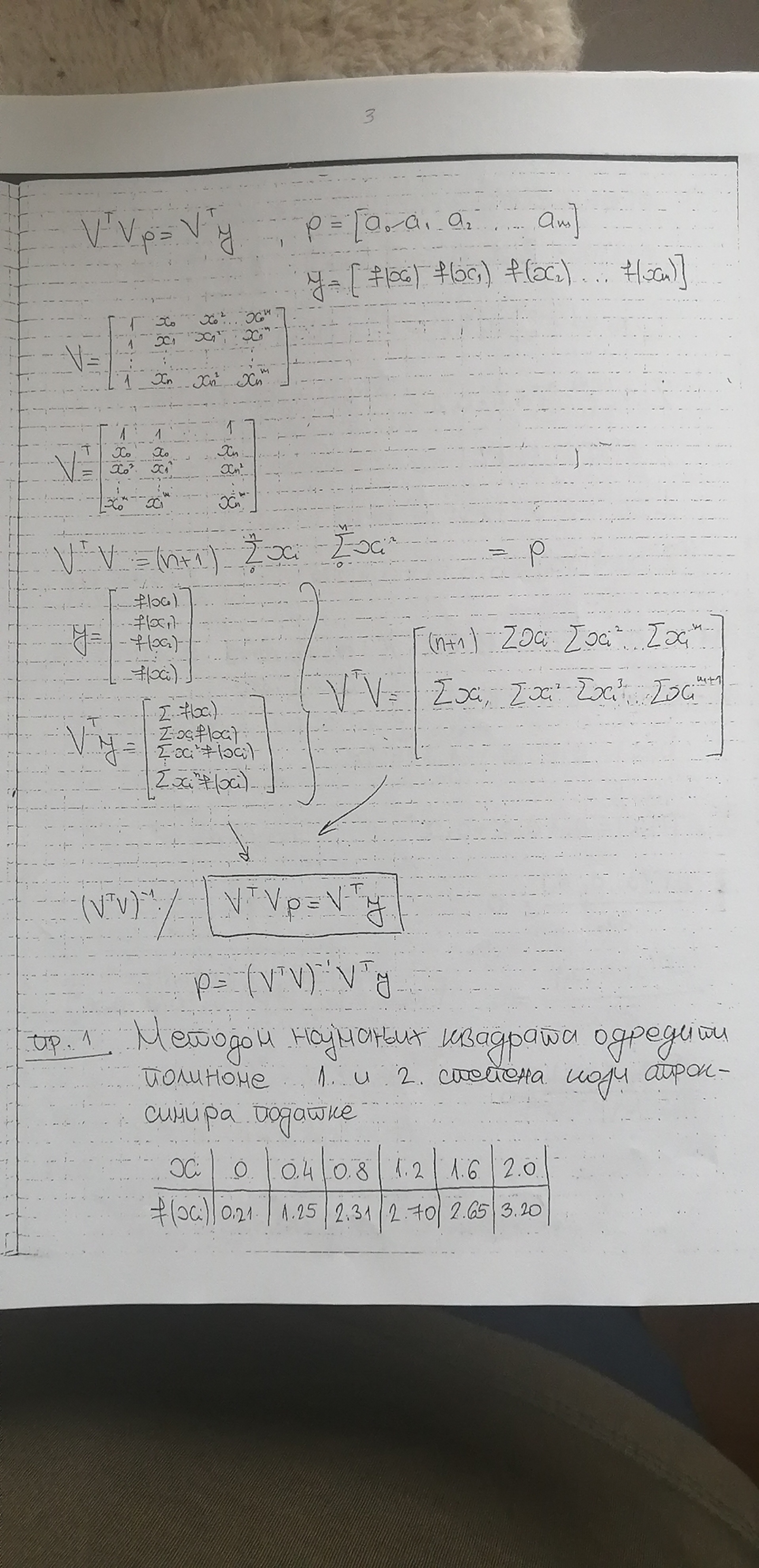 Vezano za Metodu najmanjih kvadrata se ipak ostavljaju malo detaljnije beleske i par resenih zadataka. Iz zbirke Milovanovic-Spalevic-Kovacevic prouciti zadatke 6.2.19, 6.2.20 (ne opterecivati se svim detaljima u resenju), 6.2.21, 6.2.22, 6.2.23 (bio je na kolokvijumu i lose je bio uradjen), 6. 2.24. Prilikom resavanja odgovarajuceg linearnog sistema jednacina uvek koristiti Gausov metod eliminacije sa pivotiranjem. Iz udzbenika Spalevic-Pranic, detaljno prouciti str. 153-155.