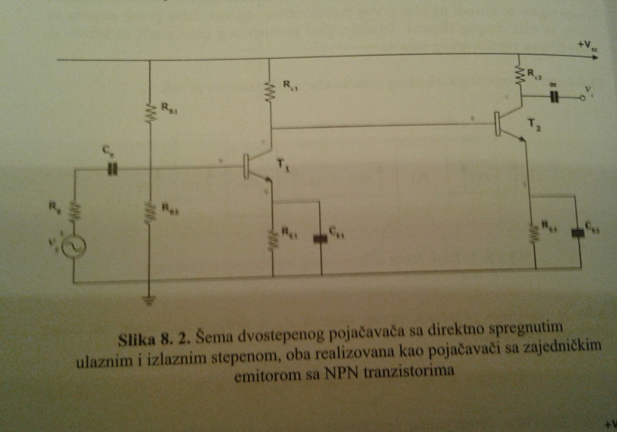 Slika 8. 2. Dvostepeni pojačavač ZE - ZE, direktno spregnuti ulazni i izlazni stepen;