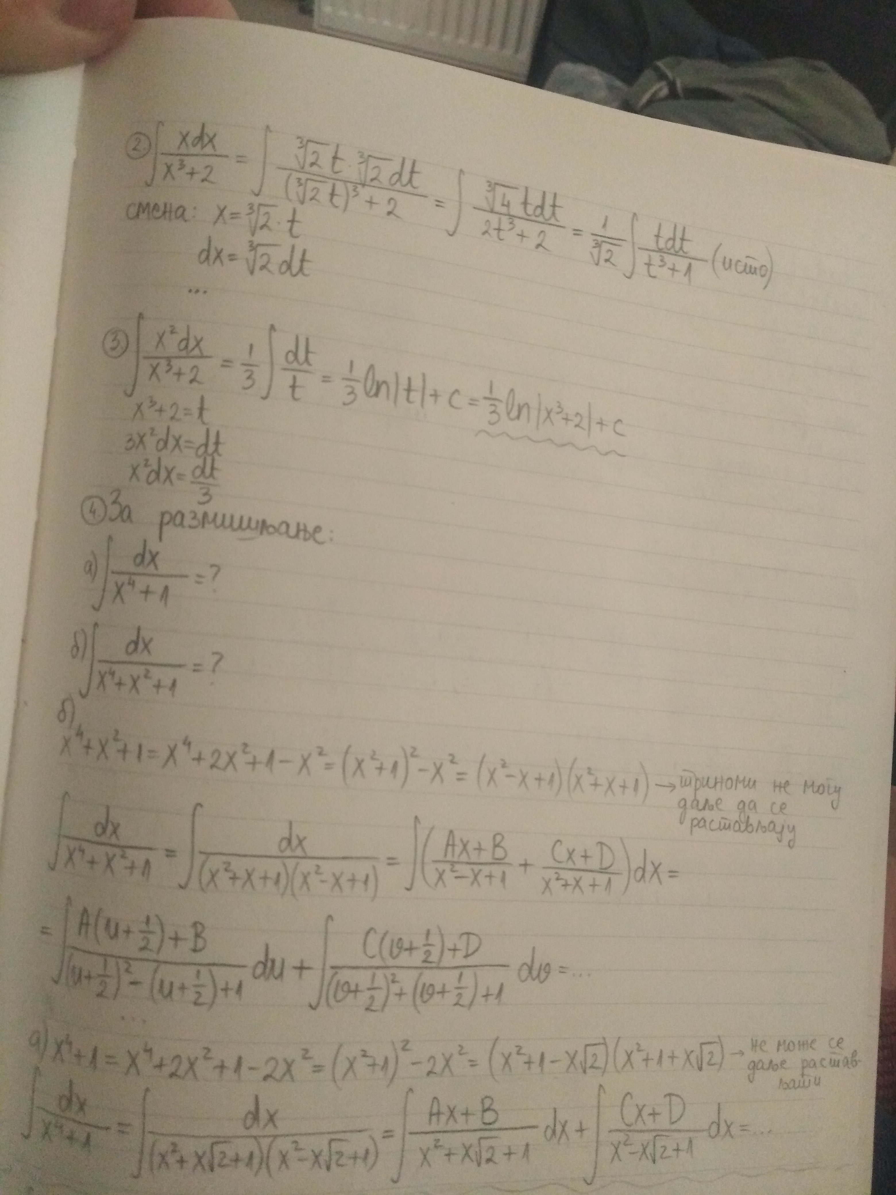 Jedan od zaključaka sa jučerašnjeg sastanka jeste da je veoma bitno biti upucen u rastavljanje polinoma na bazi Bezuovog stava kako bi se uspesno mogli rastavljati odgovarajuci polinomi u imenioci prilikom integracije racionalne funkcije, te da je potrebno da studenti ovo detaljno ponove iz srednje skole. Ovoj temi je posebno posvecen zadatak 1.31 u Udzbeniku. Slede 2 stranice beleski na ovu temu (kao sto se moze videti iz primera na 2.str., ni Bezuov stav ne moze mnogo da pomogne kad polinom nema linearne realne faktore) , a o rastavljanju polinoma se moze naci u materijalima sa Uvodne nastave za brucoše iz septembra u objavi