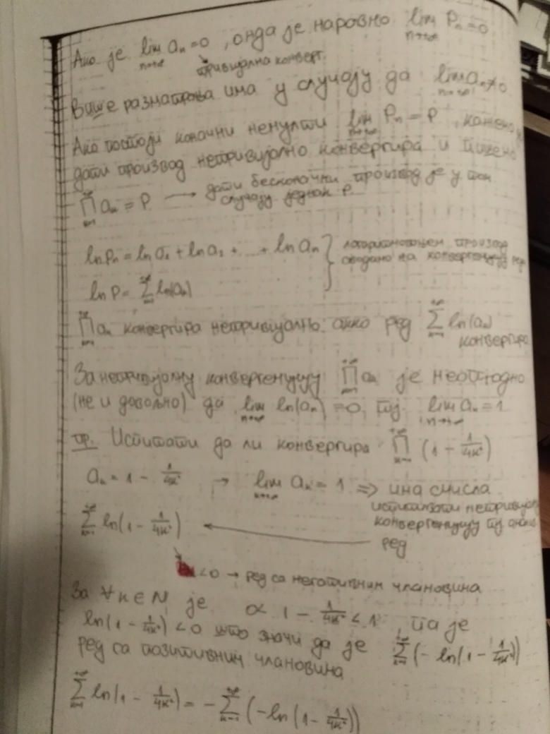 Prvi cas je posvecen opstoj prici o redovima ciji sabirci mogu biti proizvoljnog znaka, u okviru cega je posebna paznja posvecena redovima ciji sabirci naizmenicno menjaju znak, a na kraju je receno par reci o beskonacnom proizvodu (koji se logaritmovanjem svodi na beskonacni red, obratiti paznju na odgovarajuci primer bas zbog dela u kojem se ispituje konvergencija reda sa pozitivnim clanovima).