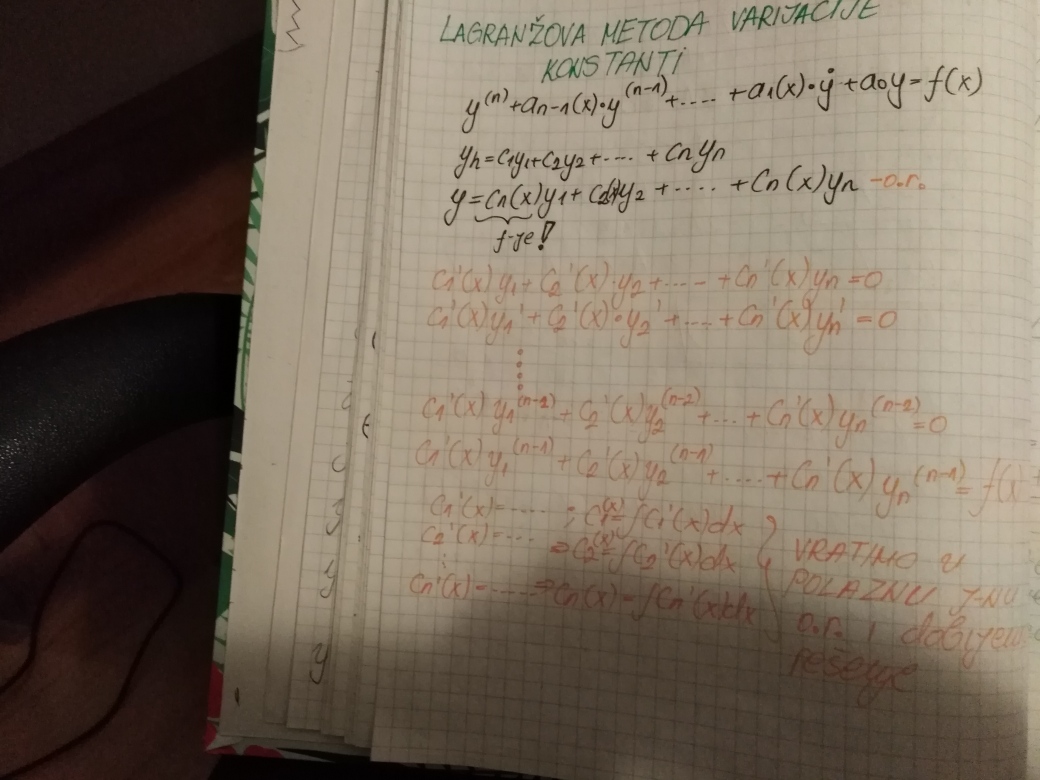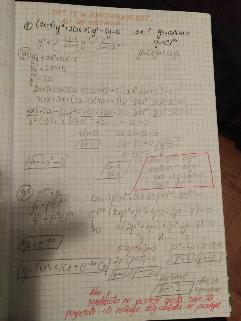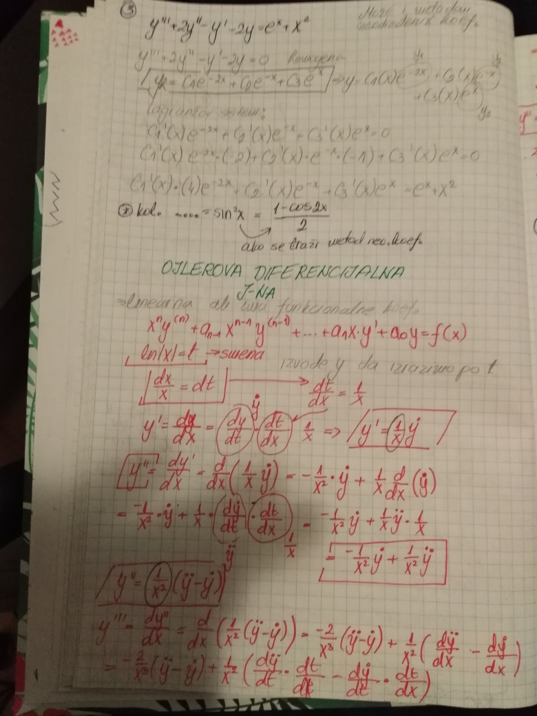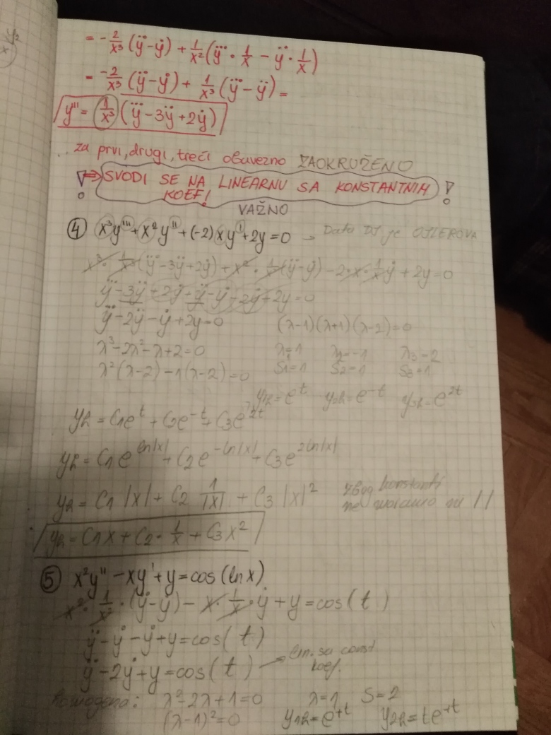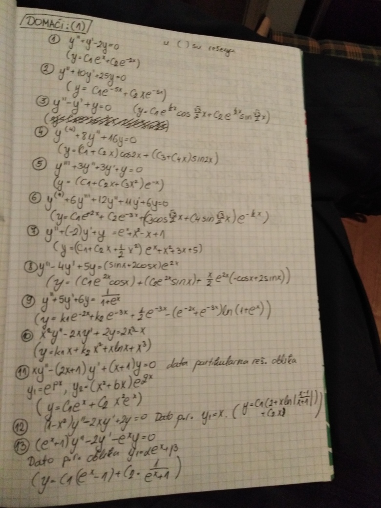 13.10. -Metoda varijacije konstanti, Ojlerova DJ, svi drugi tipovi linearnih DJ i zadaci za vezbu - smene 4 i 6 (Pejcev)