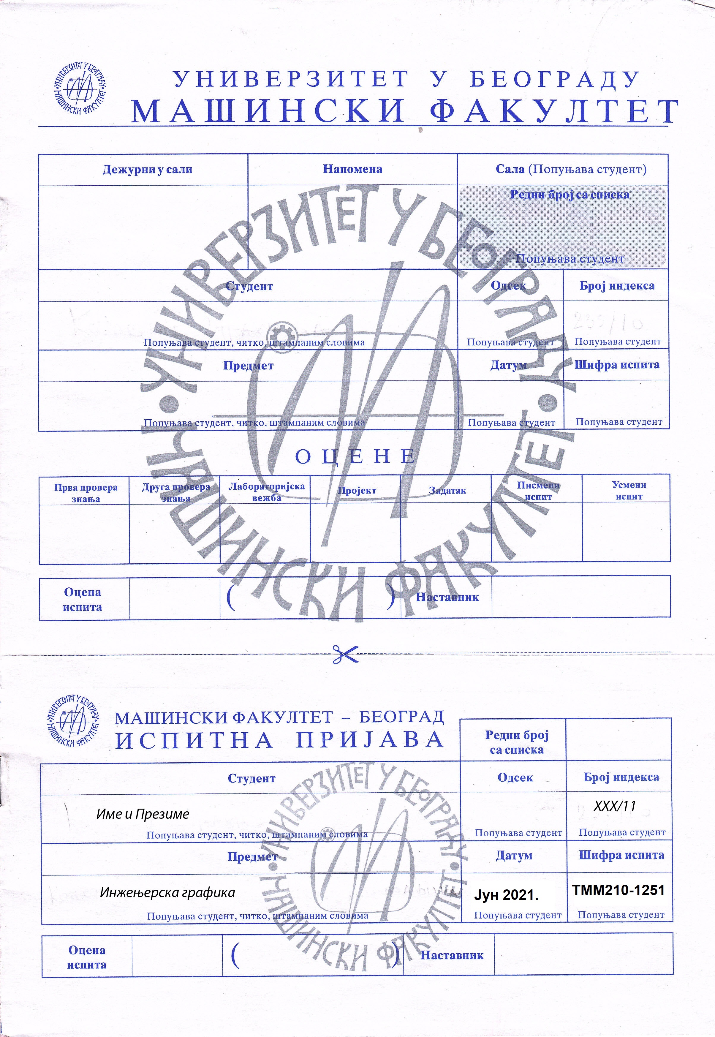 На испит је неопходно да понесете испитну свеску (попуњену према приложеној слици) и индекс.
