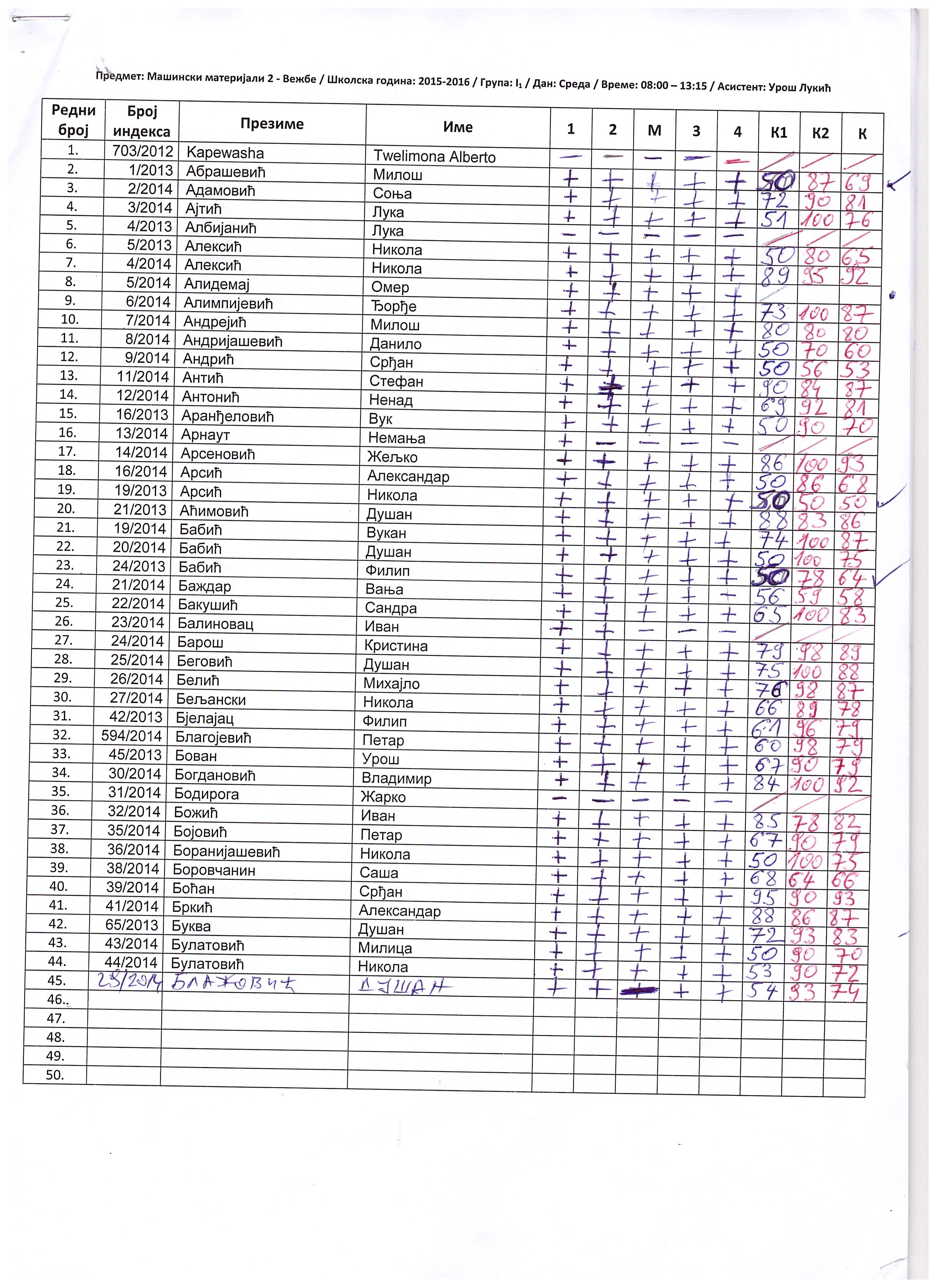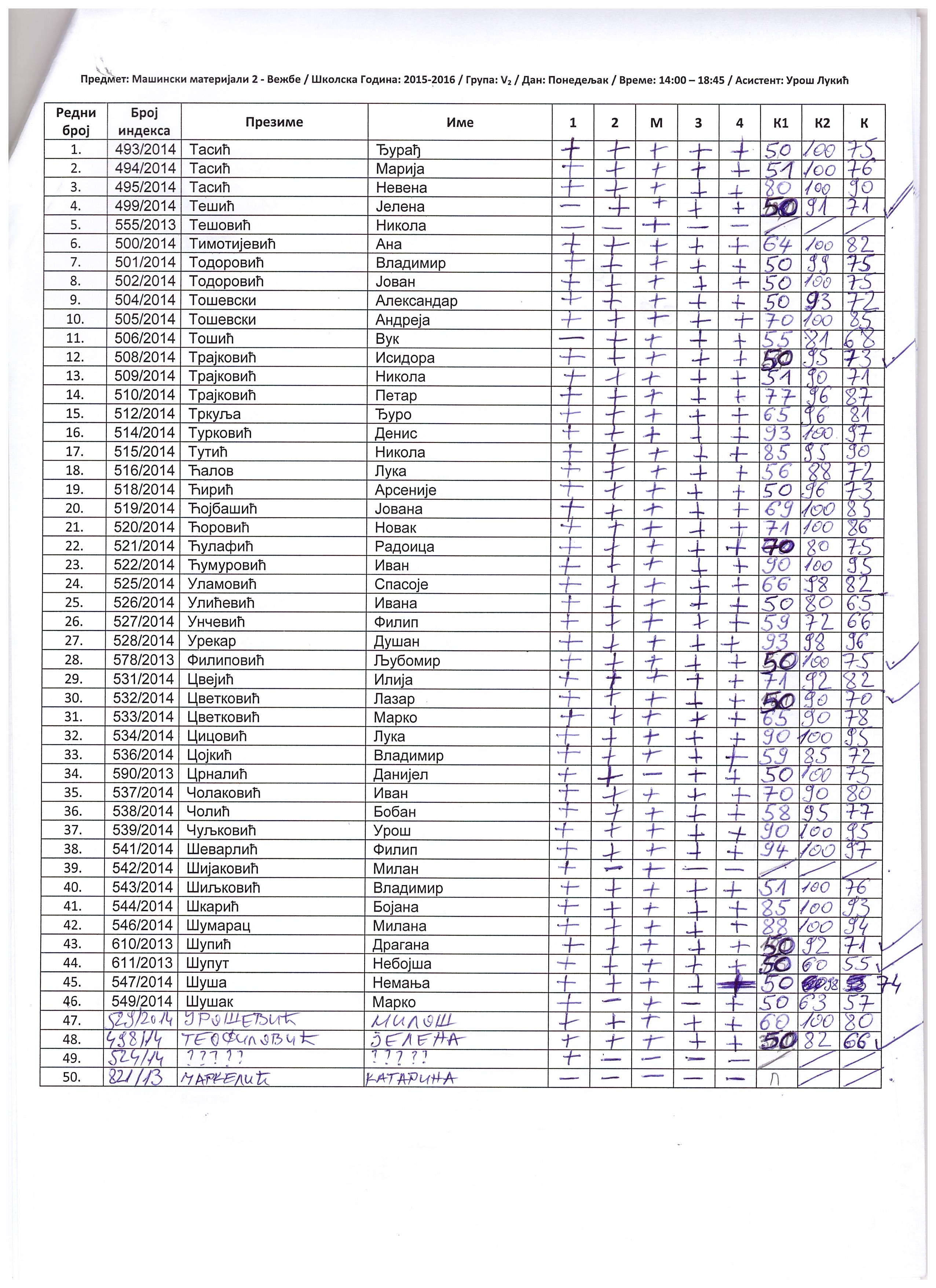 Rezultati drugog kolokvijuma iz predmeta Masinski materijali 2, za student I/1, III/2 i V/2 grupe.