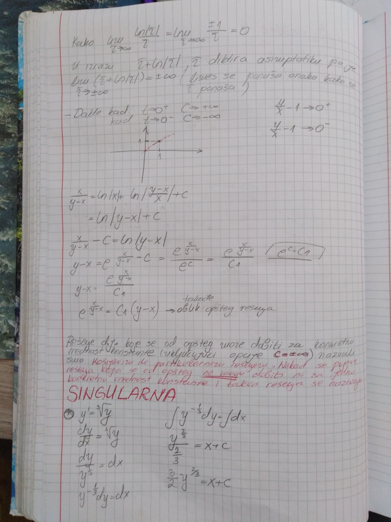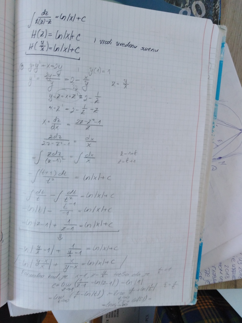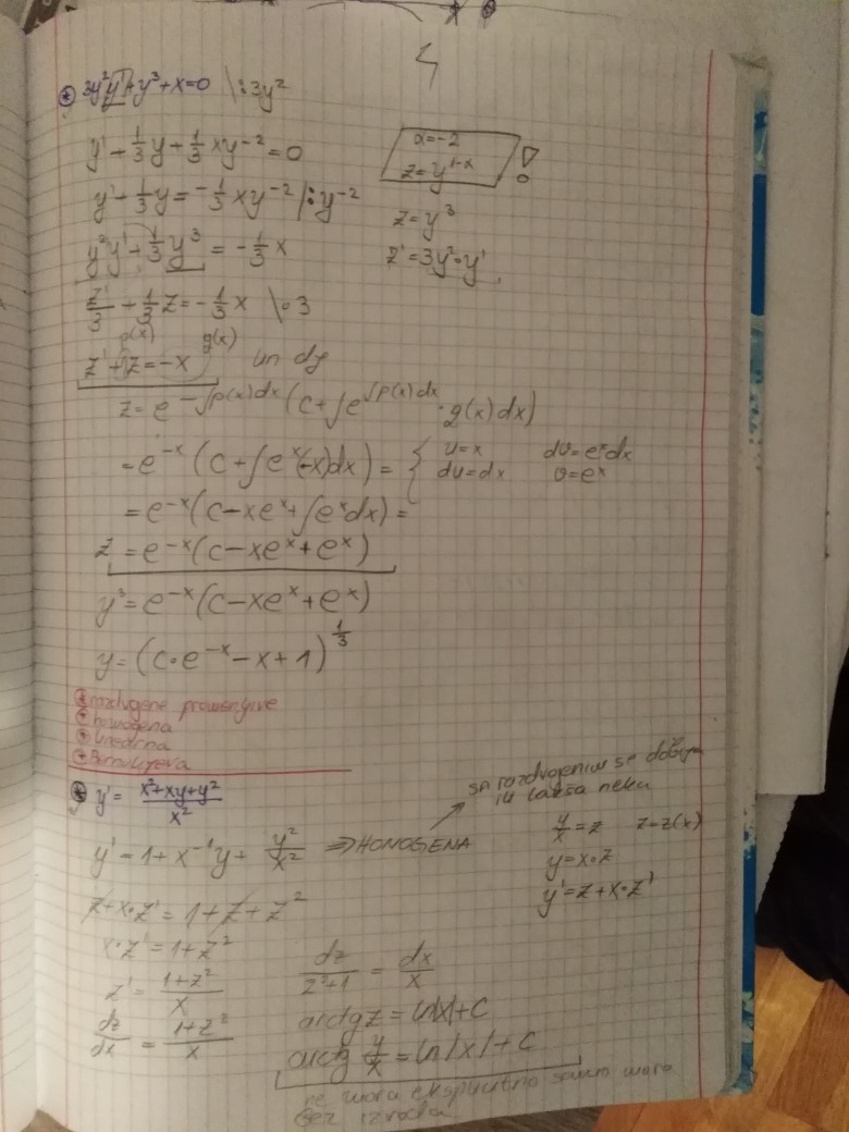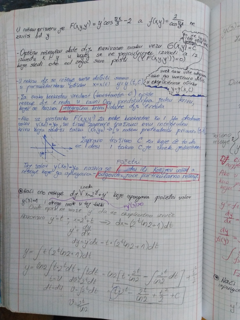 Prelazi se na poslednju oblast u ovom semestru, a to su Diferencijalne jednacine 1. reda (Drugi kolokvijum ce bar 50% biti posvecen njima - da, bice i Prvi i Drugi kolokvijum, uskoro ce da uslede i zvanicna obavestenja na tu temu). U prilogu su dati prvo predavanje i vezbe na ovu temu (koje su zapravo nastavak predavanja), ciji je cilj da klasifikuju najosnovnije tipove diferencijalnih jednacina 1. reda zakljucno sa Linearnom i Bernulijevom diferencijalnom jednacinom 1.reda.