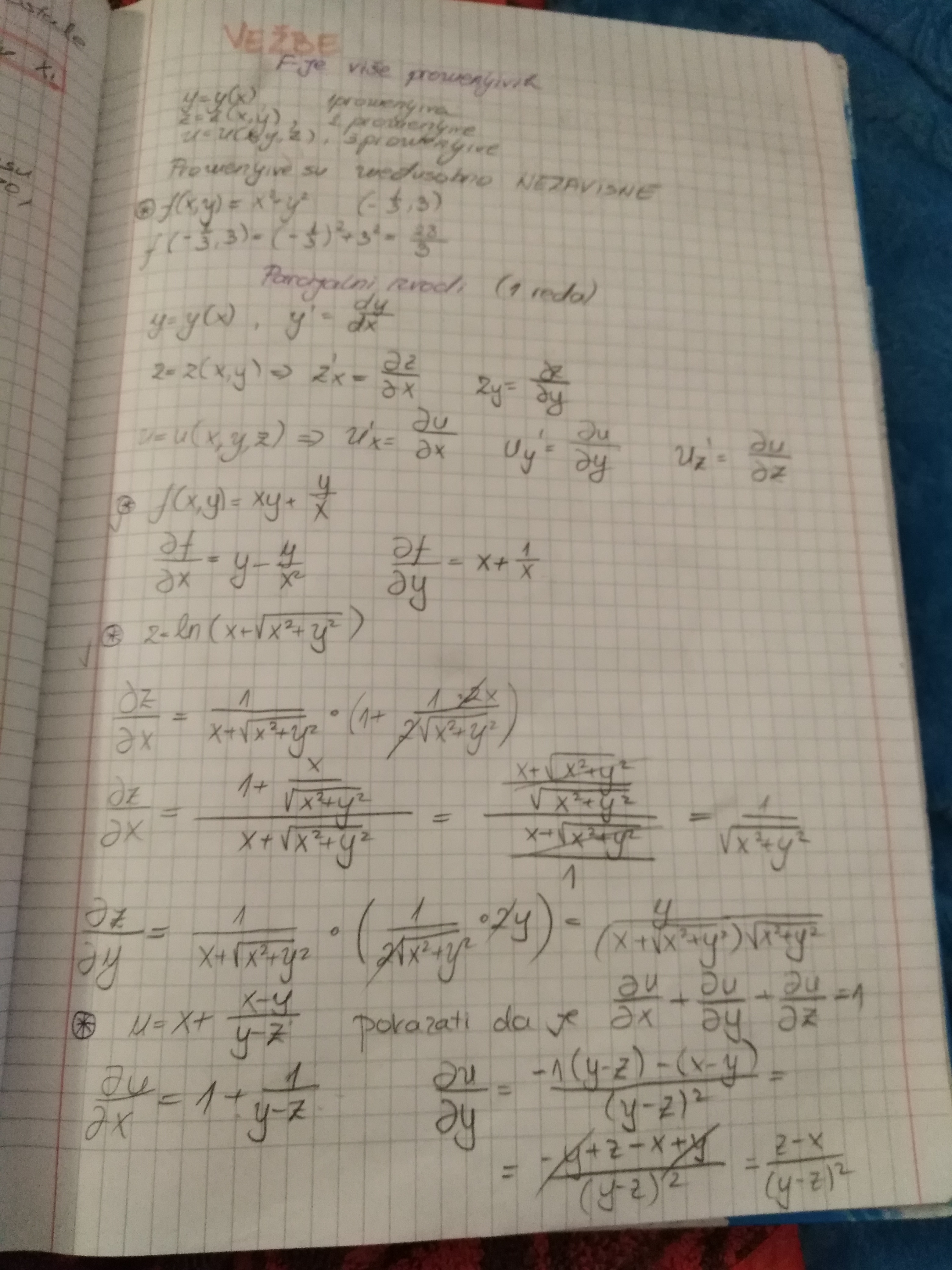 Sto se zadataka tice, sustina je u tome da se parcijalni izvod funkcije f(x1,x2,...,xn) po konkretnoj promenljivoj xj svodi na obican izvod po istoj, pri cemu se ostale promenljive tretiraju kao konstante.