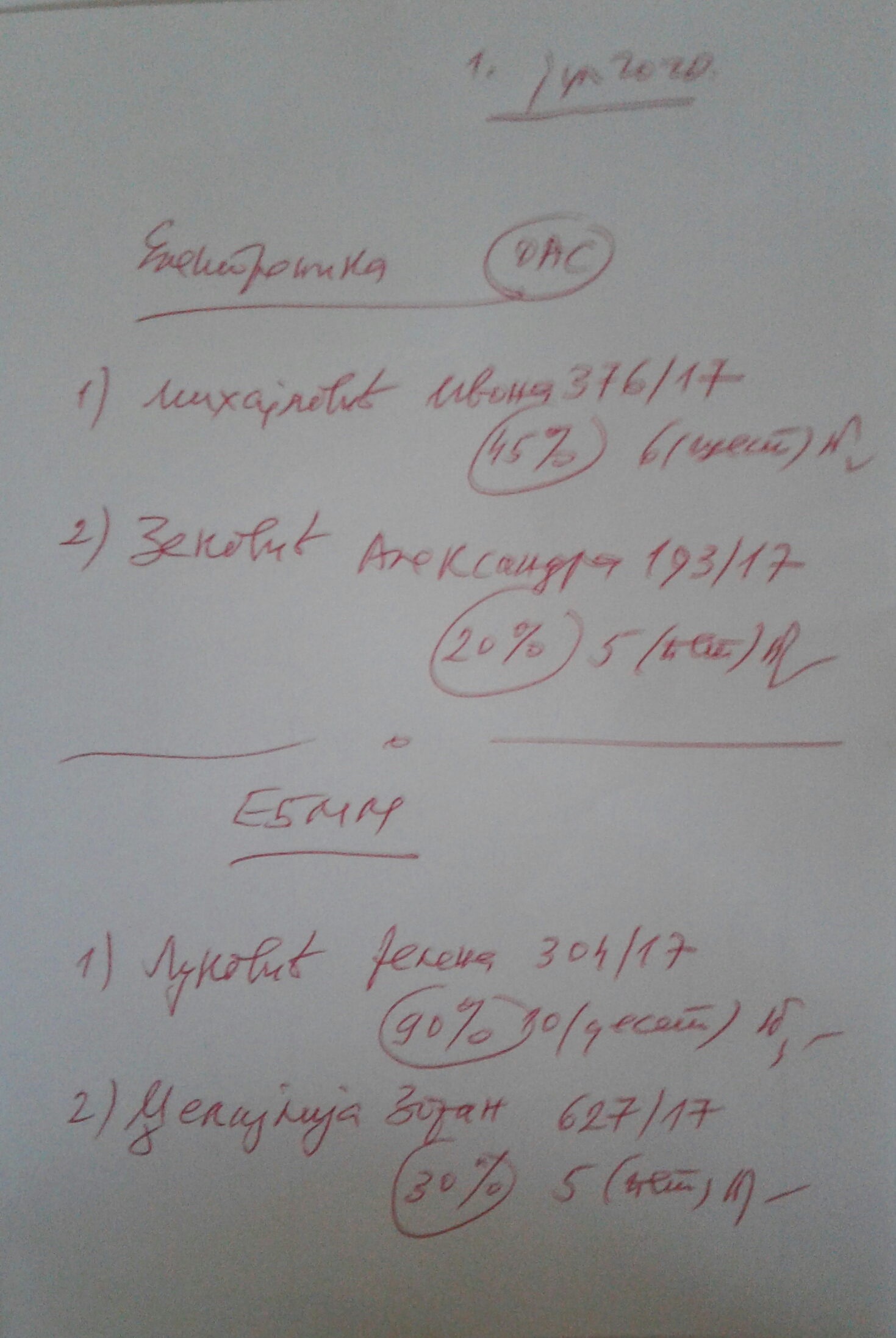 1. Lukovic Jelena 304/17 - 90% - 10 (deset)