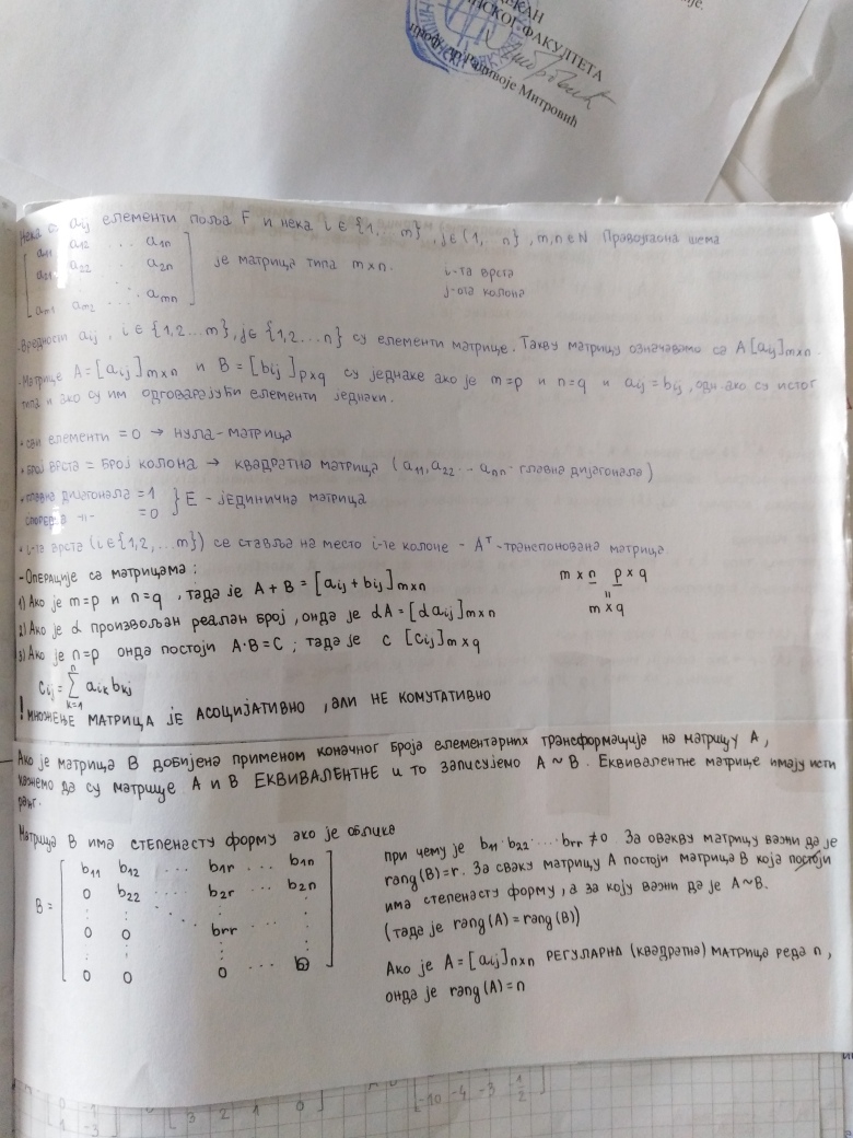 U prilogu je dat malo detaljniji opis pojedinih pojmova vezano za matrice.
