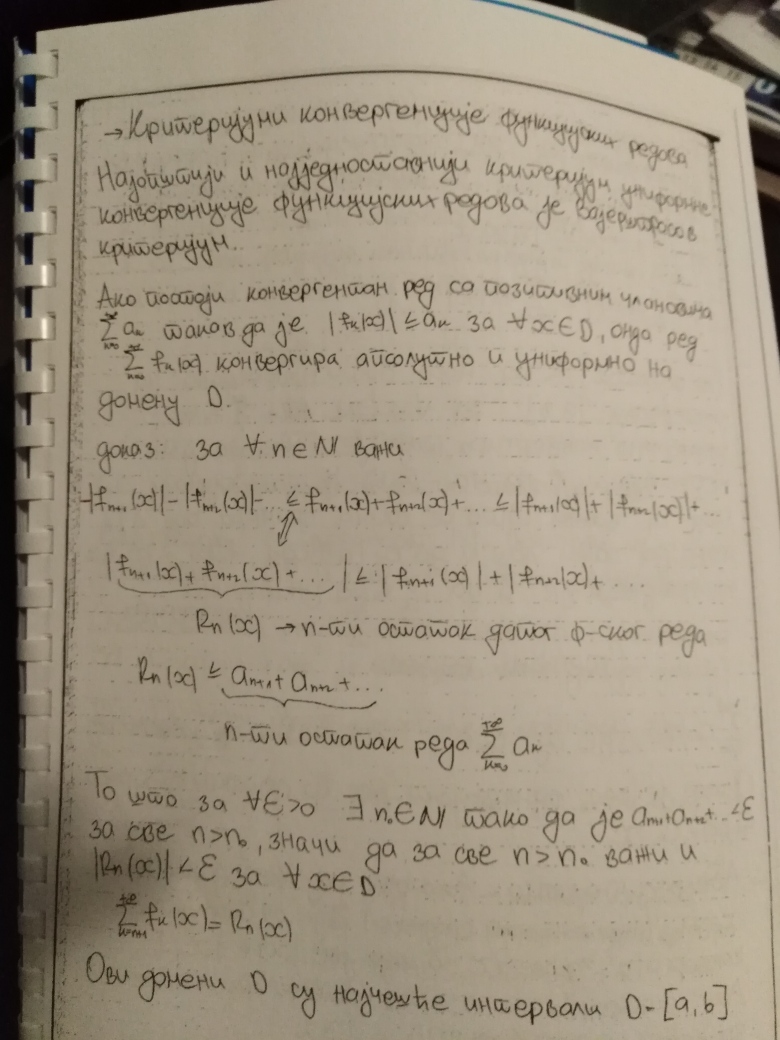 Ovim je teorija na temu Redova kompletno zaokruzena. Za 19.oktobar se planiraju javne konsultacije, a za 26.oktobar Prvi kolokvijum. Na kolokvijumu ce biti 3 zadatka na temu Redova, dok ce jedan zadatak biti na temu zaokruzivanja numerickih podataka, gresaka i znacajnih cifara (u vezi sa cim ce studenti 19.oktobra dobiti materijal, zadatak iz ovog dela gradiva uvek bude najlaksi na kolokvijumu).