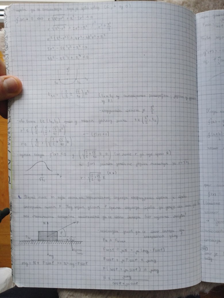 U prilogu je jedno krace predavanje na temu primena diferencijalnog racuna na probleme minimuma i maksimuma. Ova tema je za inzenjere izuzetno bitna, pri cemu se zadaci na ovu temu mogu (izmedju ostalog) naci u vec visestruko pominjanoj Zbirci za 4.razred gimnazija i tehnickih skola Srdjana Ognjanovica i Zivorada Ivanovica (i to su opet uglavnom oni iz "srednje zone" po tezini). Jedan zadatak na kolokvijumu ce svakako biti na ovu temu.