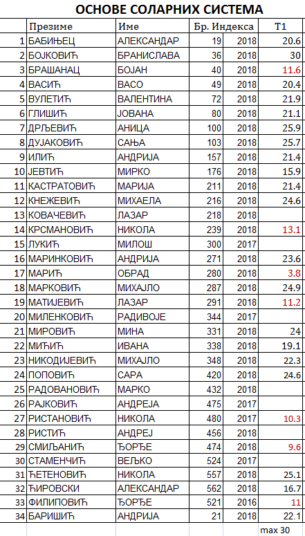 У прилогу су дати резултати полагања теста Т1.